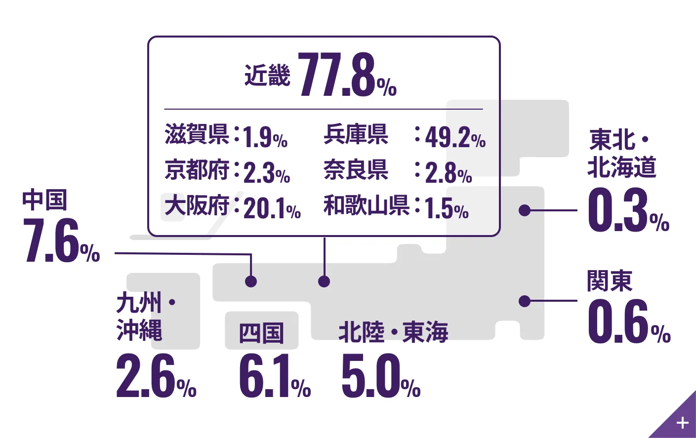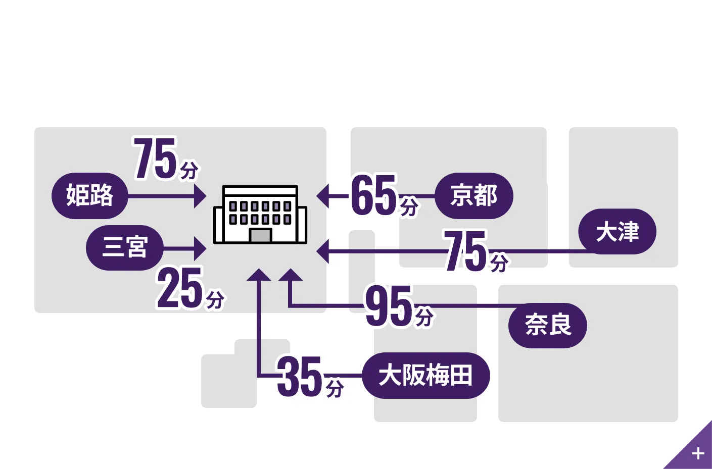 大阪、神戸から通いやすく、奈良方面からもアクセス良好です。