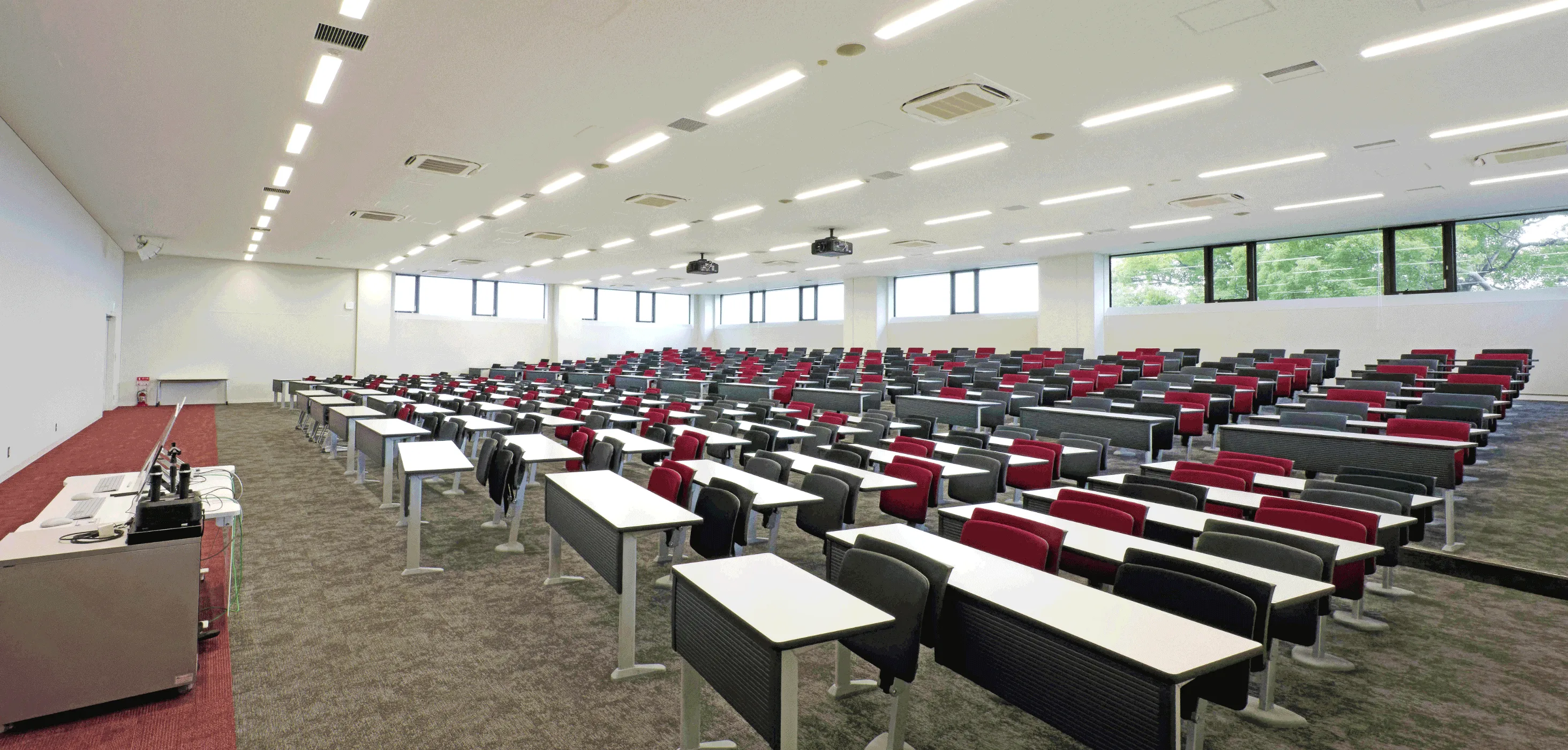 A棟の大講義室には最新の電子黒板を導入。学修をサポートするLMS(Learning Management System)では講義プリントの受け取りやWeb上で演習問題に取り組めます。自習室の座席はスマホのアプリで予約して快適環境を提供。在学中はMicrosoft Office365が無償で使えるなど、ICTを活用し学びがより深まる教育環境を整えています。